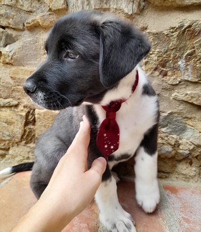 Nació el 9 de Julio aproximadamente y por cómo es ahora y por cómo son sus hermanas, creo que es mestiza de mastín con border collie. Es algo más pequeñita que el resto de hermanos pero será tamaño medio tirando a grande.