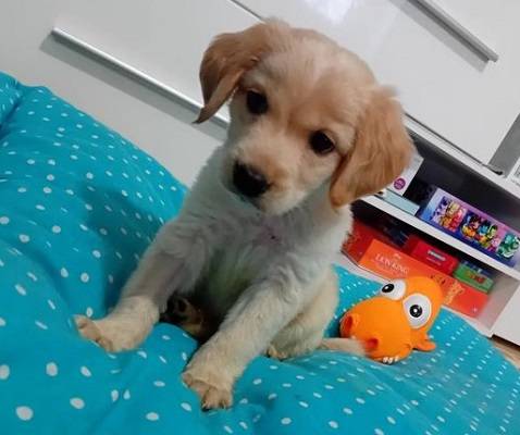 Será de tamaño mediano-grande, similar a un bretón, golden…. más o menos. Tiene 2 meses. Está en Talavera
